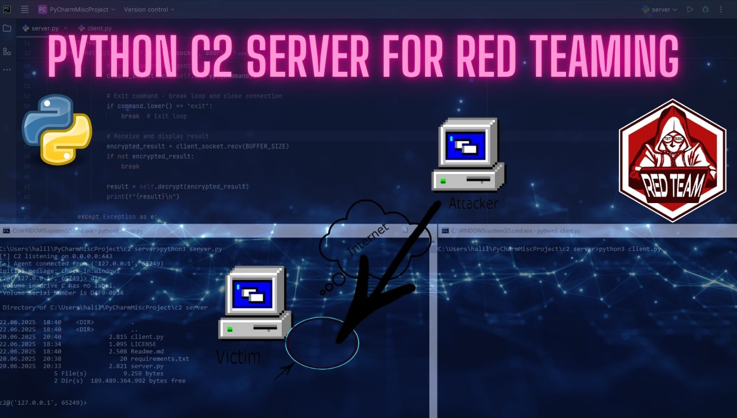 In the evolving landscape of cybersecurity, Red Team operations have become essential for organizations seeking to assess their defensive capabilities against sophisticated threats. At the heart of these operations lies the Command & Control (C2) infrastructure, a critical component that enables security professionals to simulate adversarial tactics, techniques, and procedures in controlled environments. The Python-C2-Server-for-Red-Teaming project represents an accessible, open-source solution designed specifically for authorized penetration testing and security research. This framework demonstrates how modern C2 systems operate, providing hands-on experience with encrypted communication channels, multi-agent management, and remote command execution. Built with Python, it offers a lightweight yet powerful platform for security professionals, students, and researchers to understand the mechanics of C2 operations while maintaining focus on ethical and legal compliance.