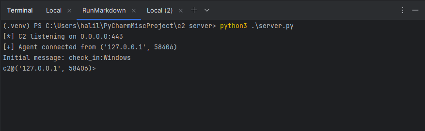 Launch the server component, which will listen for incoming agent connections and Upon successful initialization, you should see output similar to: